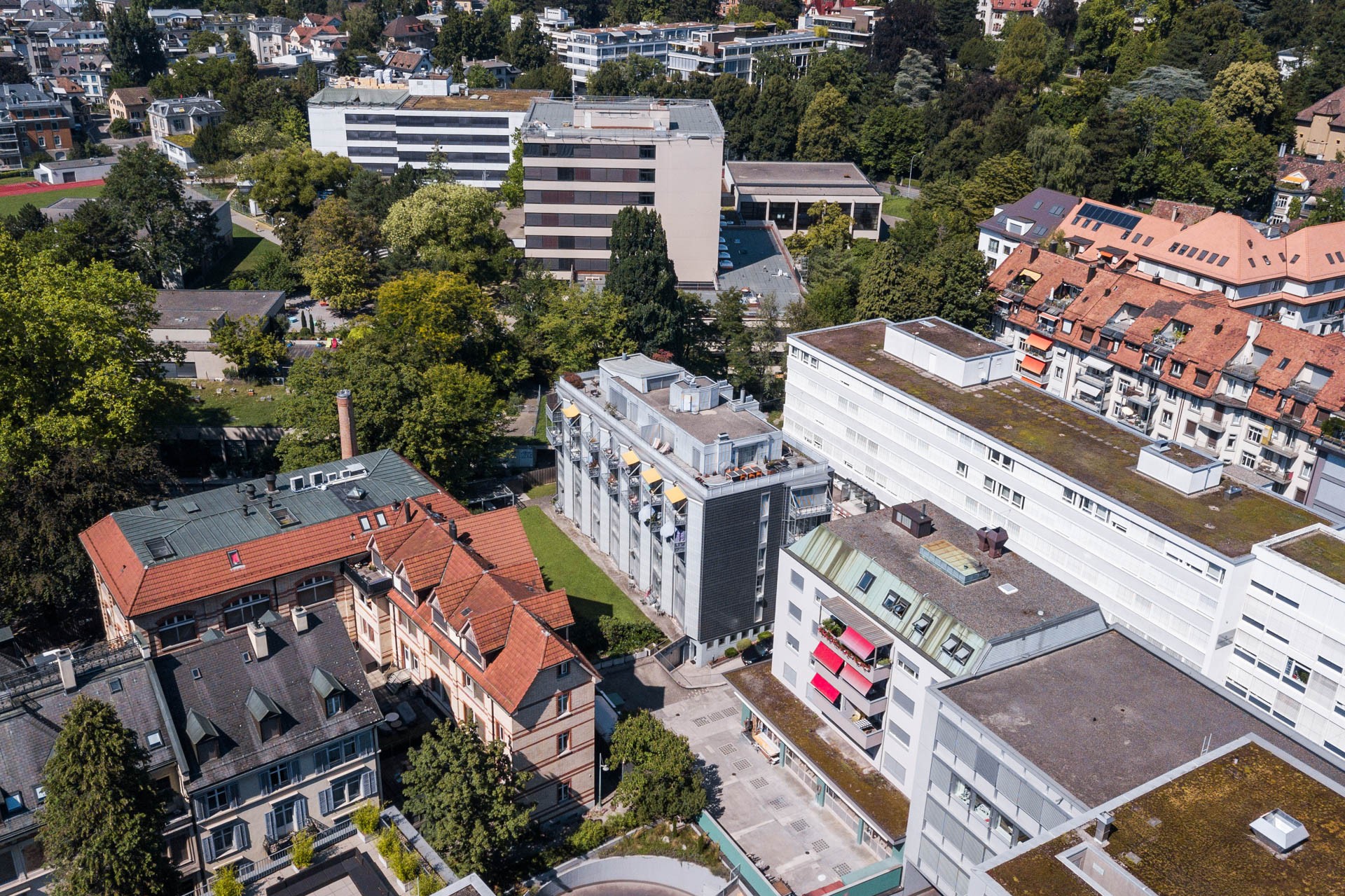 Das Wohn- und Geschäftshaus Riesbach liegt zentral im Zürcher Quartier Seefeld; Einkaufsmöglichkeiten sind in nächster Nähe vorhanden.