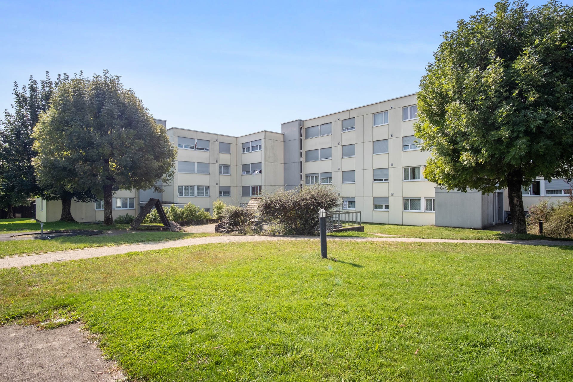 Die sechs versetzten Wohnbauten befinden sich in einer parkähnlicher Umgebung mit Sitz- und Spielplätzen.