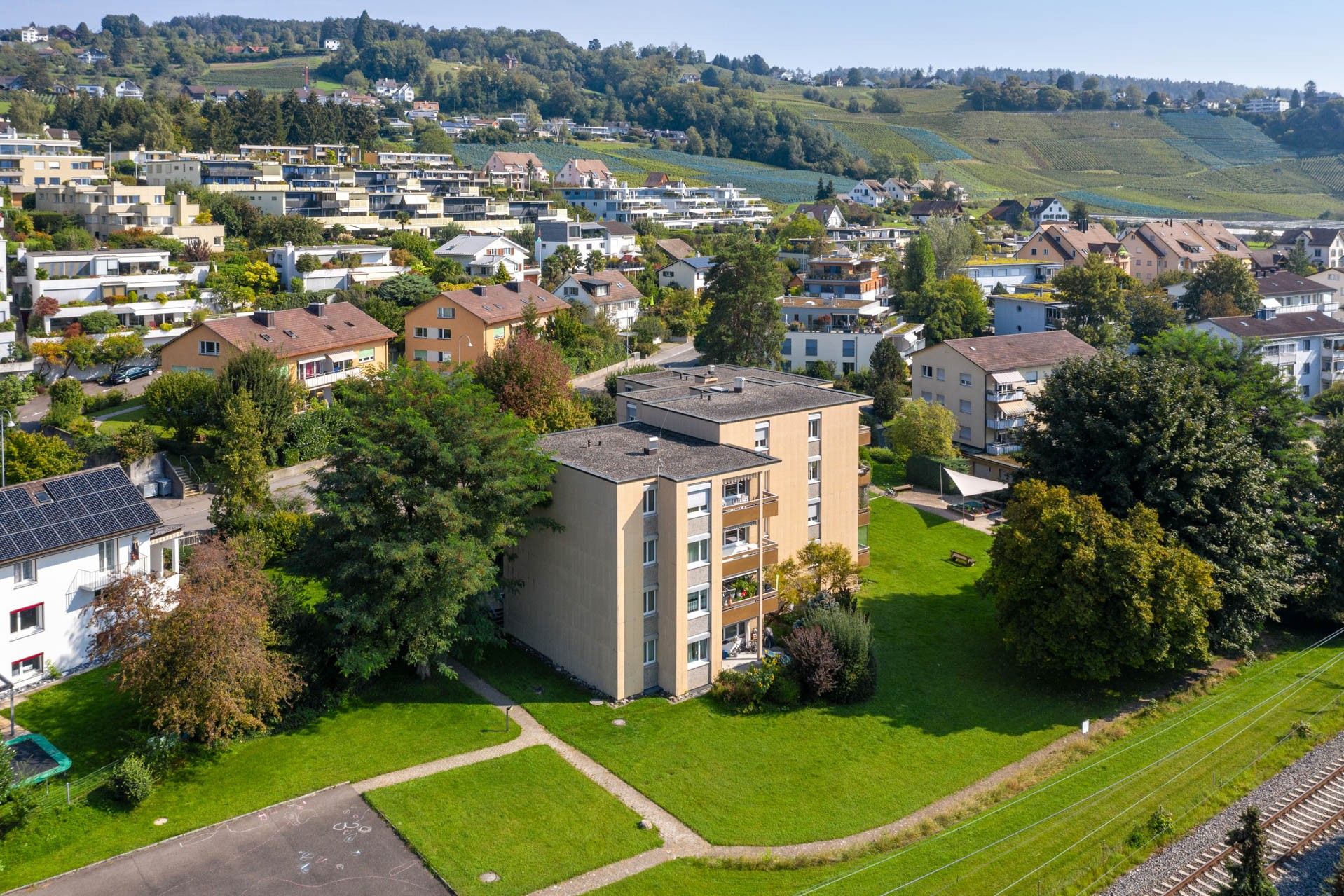 Die Mehrfamilienhäuser befinden sich oberhalb des Zürichsees, umgeben von grosszügigen Grünflächen mit Sitz- und Spielplätzen. Fernsicht auf den Zürichsee und zu den Alpen.