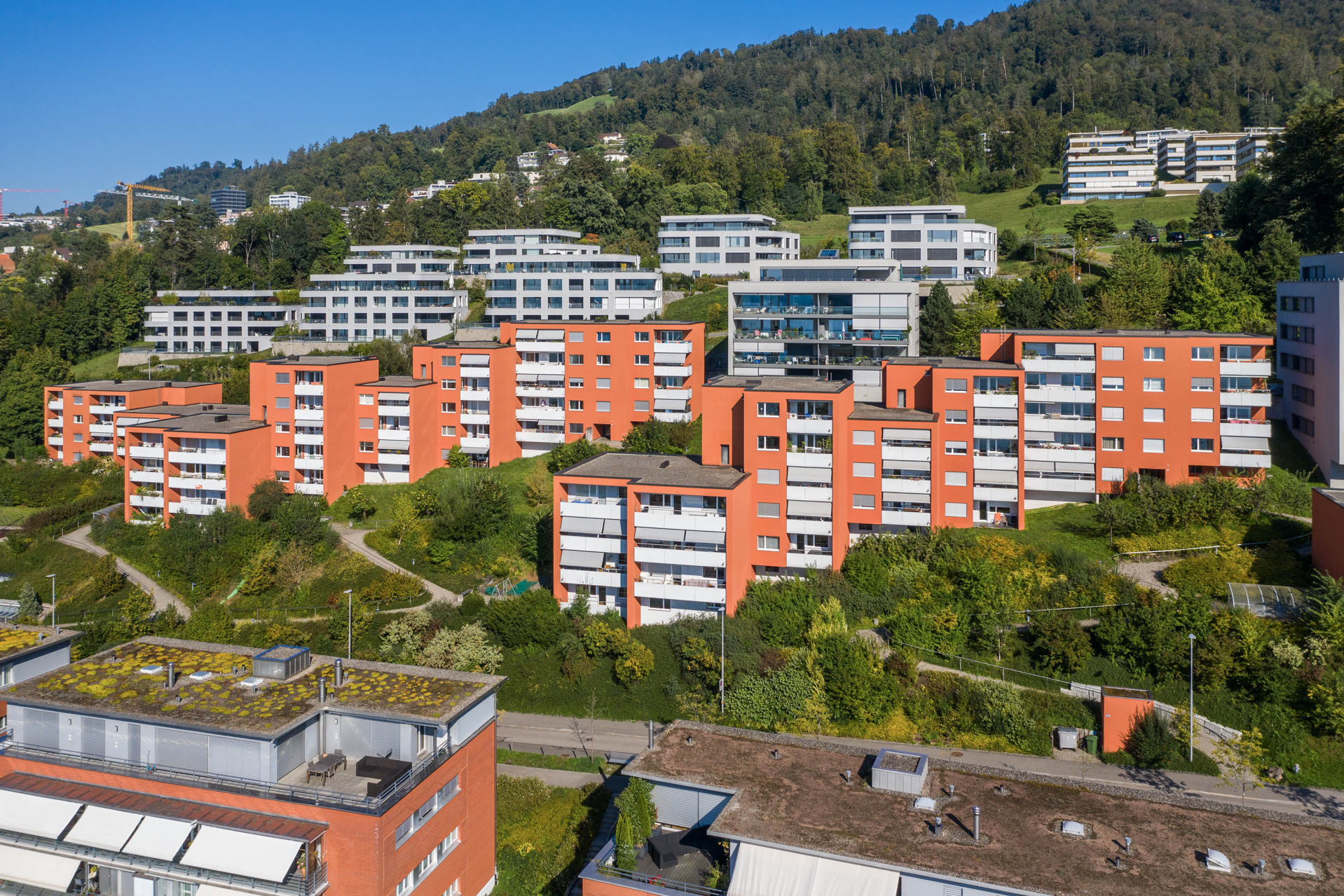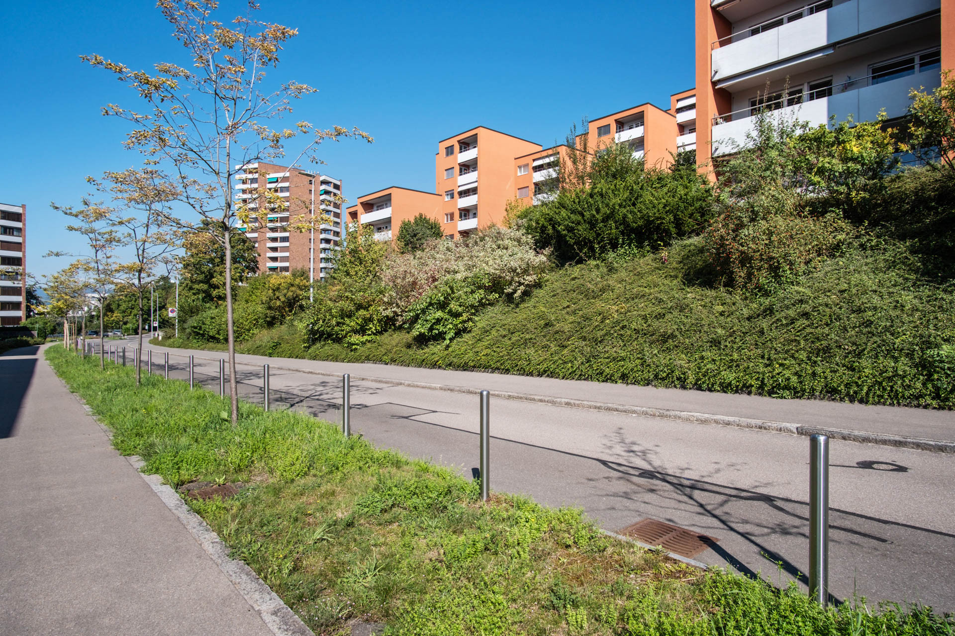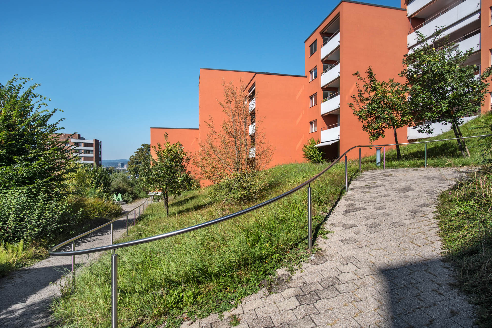 Die Terrassensiedlung liegt im Süden der Stadt Zug mit freier Aussicht nach Südwesten. Zahlreiche Einkaufsmöglichkeiten befinden sich im Zentrum von Zug.